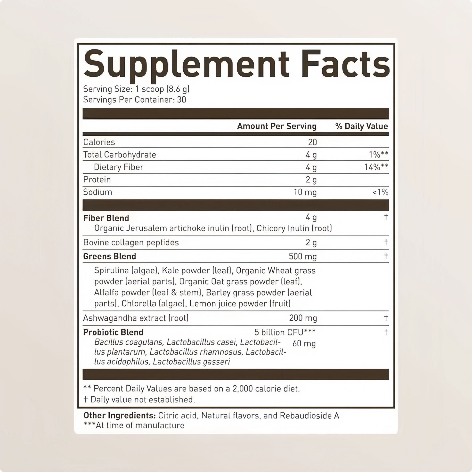 It combines 19 Chuck Norris-approved supplements like greens, probiotics, collagen peptides, and ashwagandha into one delicious strawberry lemonade-flavored drink. It works to support natural energy, smooth digestion, strong joints and muscles, clear thinking, and easy weight management.†*